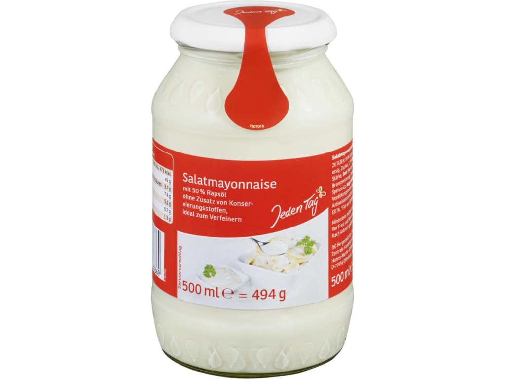 Složení: 50% řepkový olej, vaječné žloutky, vinný ocet, cukr, sůl, hořčičné semínko, kyselina citronová, antioxidant E385, koření