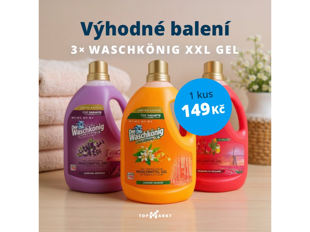 Výhodné balení limitek 3 x Waschkönig XXL Gelu na praní 110 Pracích cyklů