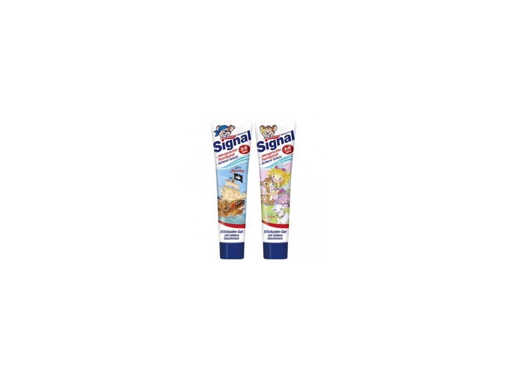 Zajišťuje rozsáhlou péči o dětský chrup. Při pravidelném užívání brání poškození skloviny a brání vzniku zubního kazu. Obsahuje přiměřené množství fluoridu, které dostatečně vyživuje dětské zuby. S dětskou pastou Signal bude čištění zubů pro děti zábava.
